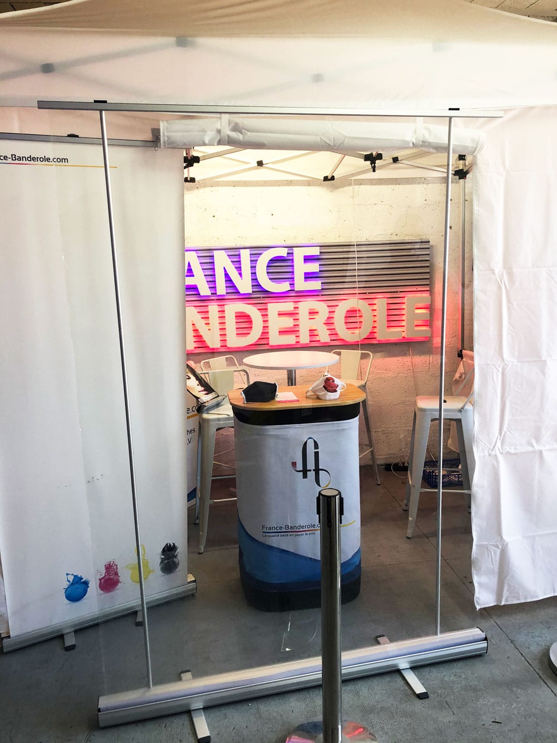 Roll-up transparent de protection et distanciation physique 15/05/2020 - Roll-up transparent de protection pour distanciation physique - paroi de protection anti-postillons coronavirus Nous vous proposons un tout nouveau support : le roll-up transparent avec un film PET 180 microns qui est un film hautement transparent qui permet, grace à la structures kakemono type roll-up ou clip'it qui l'accompagne, de réaliser des séparations de protection. Gardez ainsi le contact avec vos collaborateurs et clients tout en prévenant la propagation du virus : séparateurs transparents ou roll-up transparent dans les bureaux pour définir des espaces protégés dans un restaurant, parois transparentes dans vos ateliers pour encadrer des postes de travails, roll-up transparent à poser entre les tables de brasserie restaurant, salle de sport ou de fitness (grace à la paroi transparente, les convives voient le coach dans le cadre d'une salle de sport ou voient le serveur et les tables voisines dans le cadre d'un restaurant ou café, bar, brasserie) pour maintenir une distancation physique appelée également distanciation sociale entre chaque personnes, salariés ou clients. Vous pouvez retrouver ce roll-up transparent en tailles standards sur notre page dédiée à la signalisation et la prévention COVID-19 Vous pouvez également les commander à des tailles personnalisées et une impression sur le film transparent sur notre page devis en ligne Totem (choisissez le Clip'it) ou sur notre page Roll-up (choisissez le Bestline ou le Luxline). Sur un choix de dimension en largeur inférieure ou égale à 150 cm, le support PET transparent vous sera proposé au choix suivant. Imprimable avec blanc de soutien, vous pourrez apposer sur ce support vos logos ou des messages de prévention si vous le souhaitez (nous vous invitons alors à nous le signaler en commentaire et à nous envoyer vos fichiers de personnalisation une fois votre commande enregistrée). Prenez bien soin de vous tous, et n'oubliez pas que déconfinement ne signifie pas fin des gestes barrières, bien au contraire, restez vigilants et mobilisés, continuez de porter des masques barrières pour votre protection et celle des personnes qui vous entourent, lavez-vous les mains avec du savon ou du gel hydroalcoolique assez souvent, et conservez une distanciation physique de 1 mètre minimum avec les autres individus. L’équipe France Banderole lire la suite
