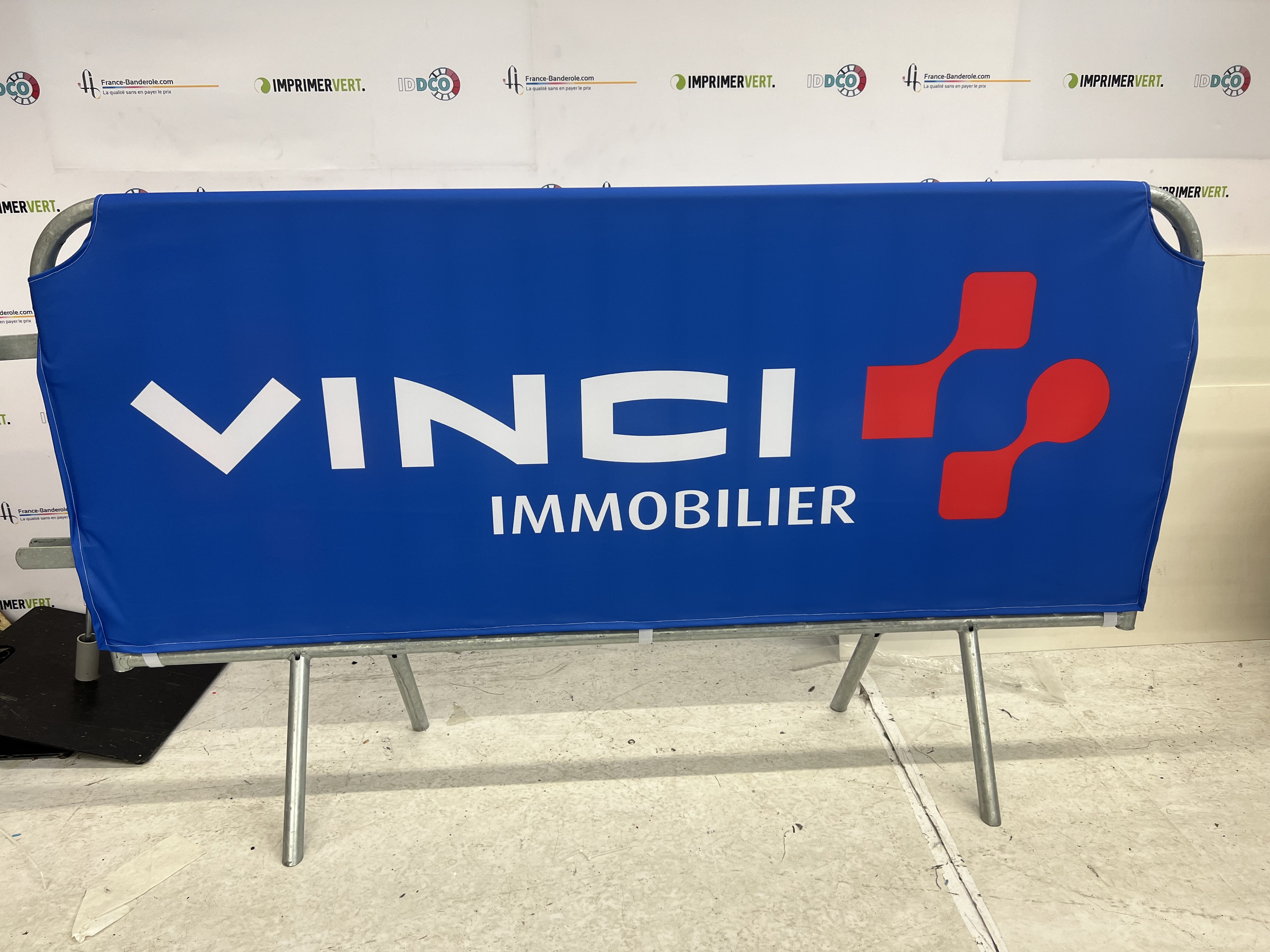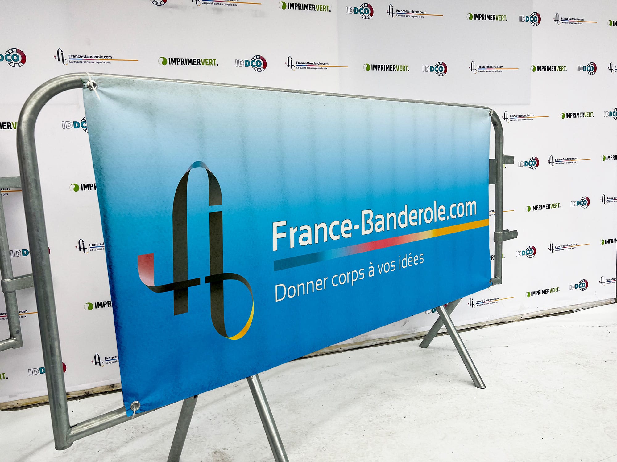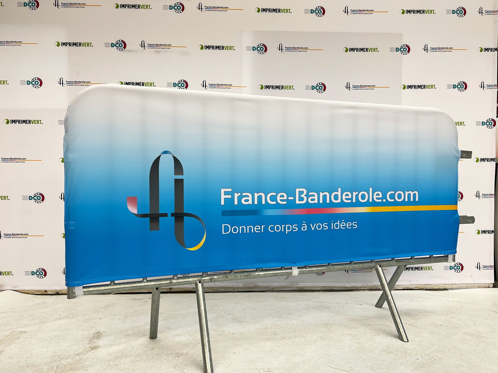 Impression de cache-barrière, housse, chaussette et banderole pour barrière Vauban, Nadar ou Heras au meilleur prix. Habillage de barrière de sécurité mairie, police, événement sportif, manifestation, concert. Impression dès un exemplaire ou au kilomètre sur le support de votre choix (non-tissé, pvc mesh ou tissu M1). Impression quadri recto ou recto/verso. chaussette de barrière écologique réutilisable et lavable à 60°c. Produits certifiés Made in France, livrés prêt-à-poser avec colliers*. Tarifs en ligne et livraison rapide en 24h/48h possible.