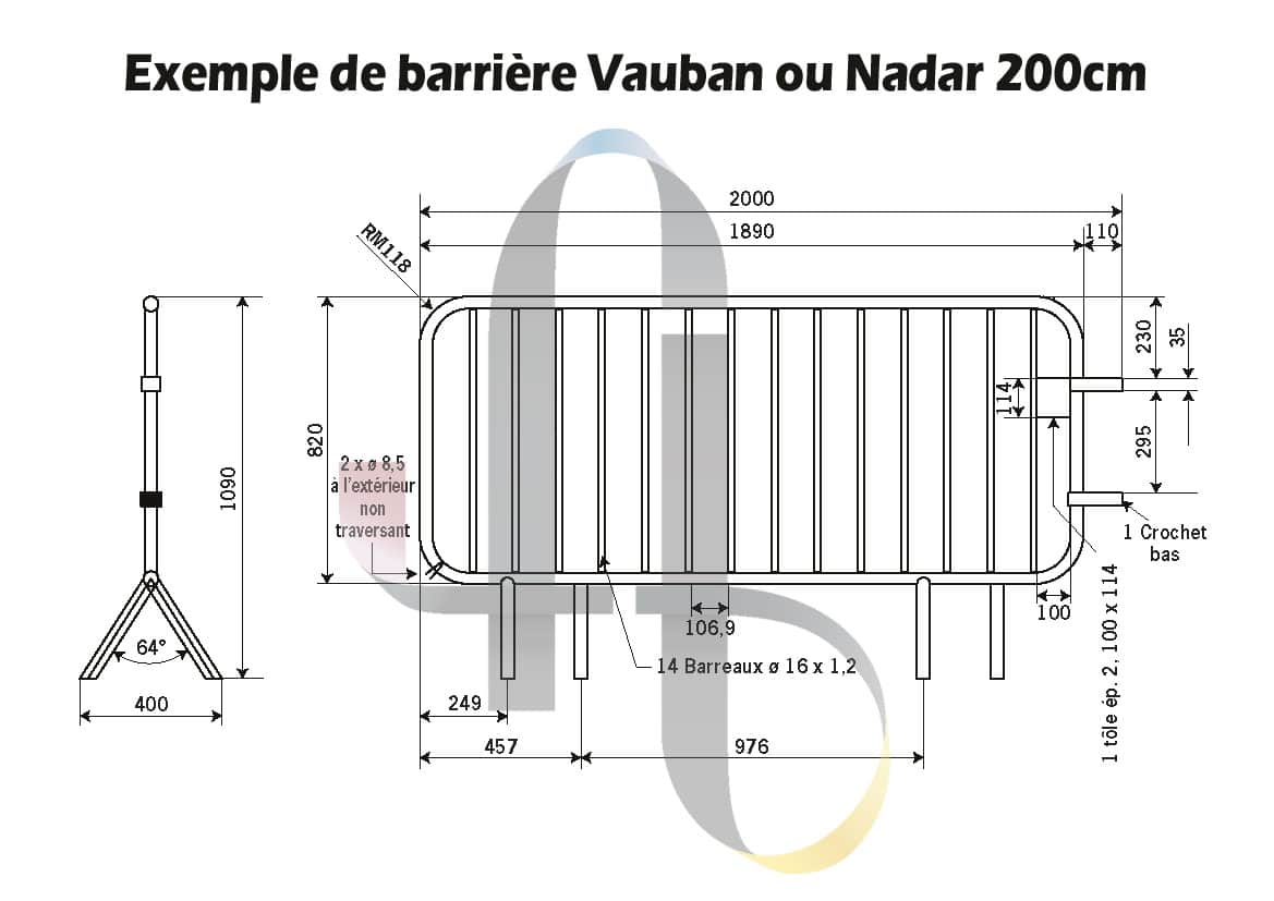 DIMENSIONS DE BARRIERE VAUBAN NADAR DE SECURITE :